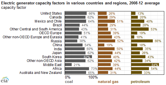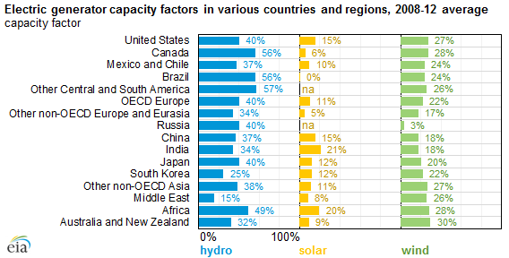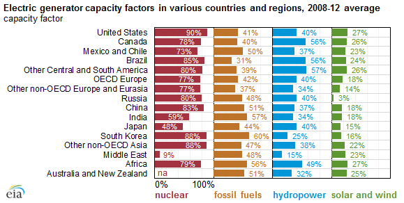 Electric generator capacity factors vary widely across the world, EIA, 2015/09/08. http://www.eia.gov/todayinenergy/detail.cfm?id=22832