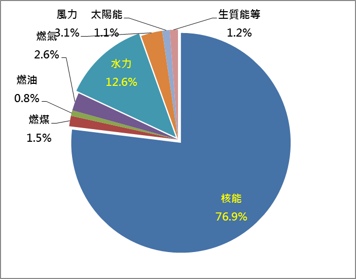 (三) 法國2014年再生能源發電量960億度(占總發電量的18%)、化石燃料發電量占5%,核能發電量占77%(圖1),核電至2025年要減至50%。2023年高案的再生能源發電量要達到1,670億度,較2014年增加74%。此外,能源轉型法設定2030年再生能源(含水力)發電量的目標要達40%,若核電比率為50%,其餘火力發電的占比則為10%。相較於2014年的火力發電占5%,此表示2030年有部分核電的削減缺口,必須以化石燃料發電填補。