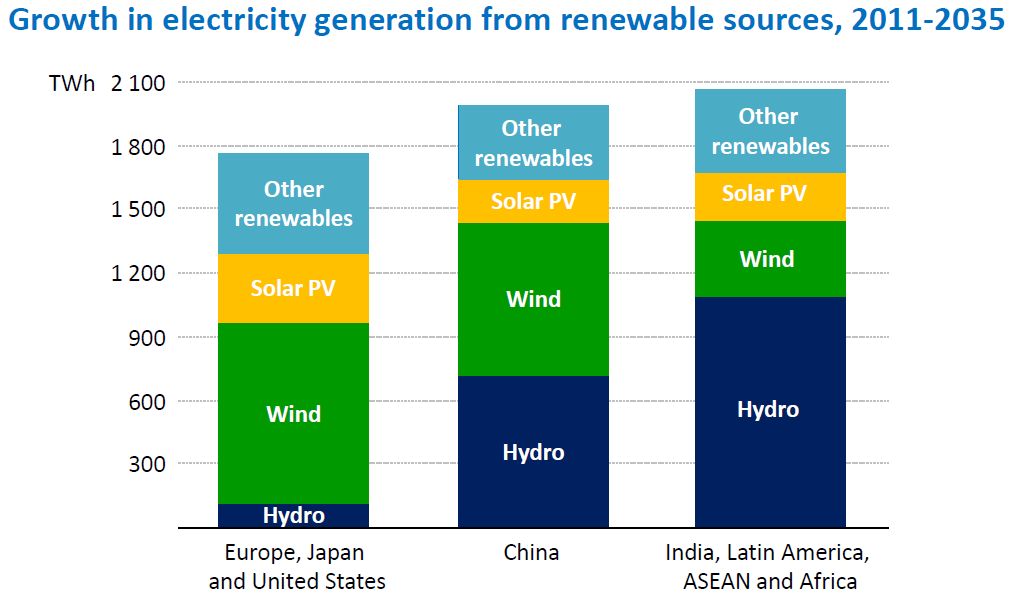- 2012年再生能源的補貼超過1000億美元,2035 年將擴大到2200 億美元。