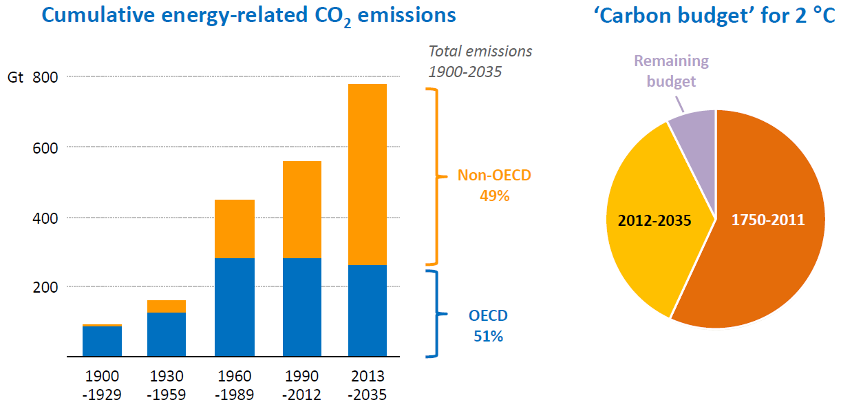 - 本報告的核心情景認為,到2035年,與能源相關的二氧化碳排放仍將上升20%,從而使世界仍處於長期平均氣溫上升3.6℃的趨勢下,遠高於國際上普遍接受的2℃溫升目標。
