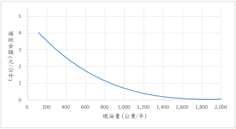 圖3 總油量與平均每公升補助金額