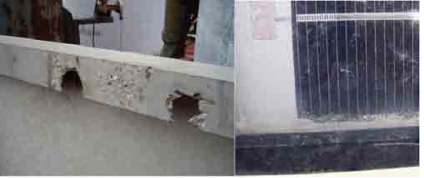 圖一:太陽能模組(左)鋁框腐蝕(右)電池晶片受損 (資料來源:工研院IEK 2010)