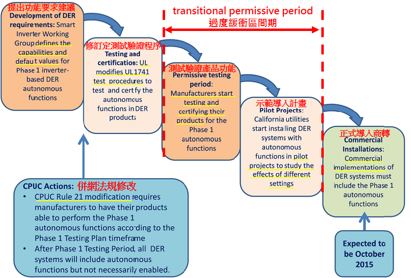 Ø 智慧變流器工作小組(SIWG)於2014年1月提出建議草案,建議將智慧變流器的推動分成以下3個階段(phase)進行