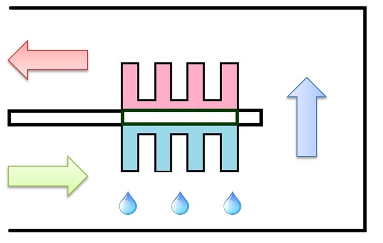 - 小型除濕機:一般壓縮機式除濕機體積大,使用時也會有些微噪音。利用致冷模組的冷端及散熱鰭片,表面溫度到達空氣內水分子的凝固點後,水氣會在鰭片表面冷凝,達到除溼的效果。溼度降低後的氣體再通過模組的熱端,除了冷卻模組的熱端溫度,也可使空氣被稍微加熱,乾燥程度更佳。